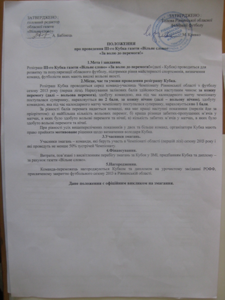 ПОЛОЖЕННЯ ПРО КУБОК
