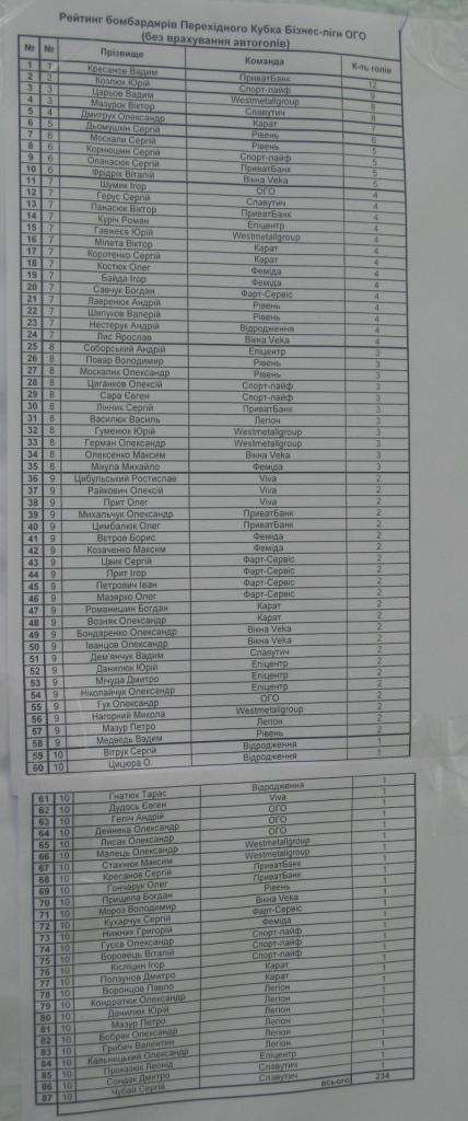 | узагальнений Р-РЕЙТИНГ команд турірну |