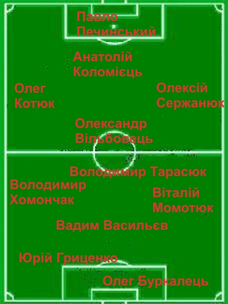| 13. Ткачук Юрій | (42') | Котюк Олег. 16 |