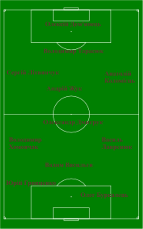 | 10. Довгалець Олександр Л. (к) | (65') (32') | Васильєв Вадим. 9 |