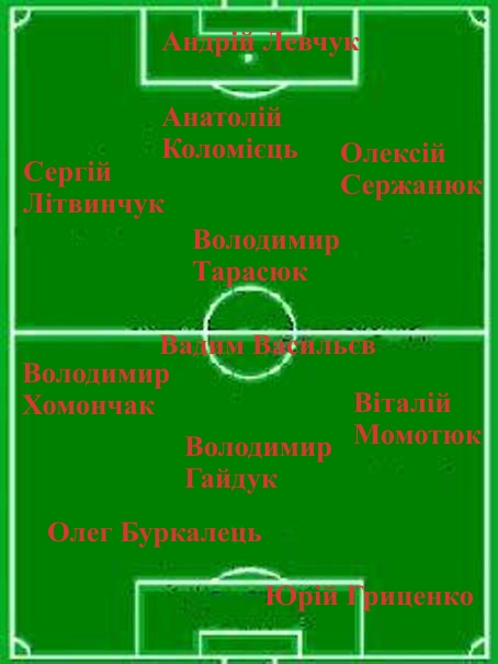 | 8. Отченаш Тарас | (60') (80') | Гриценко Юрій. 11 |